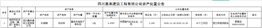 四川嘉来建筑工程有限公司资产处置公告