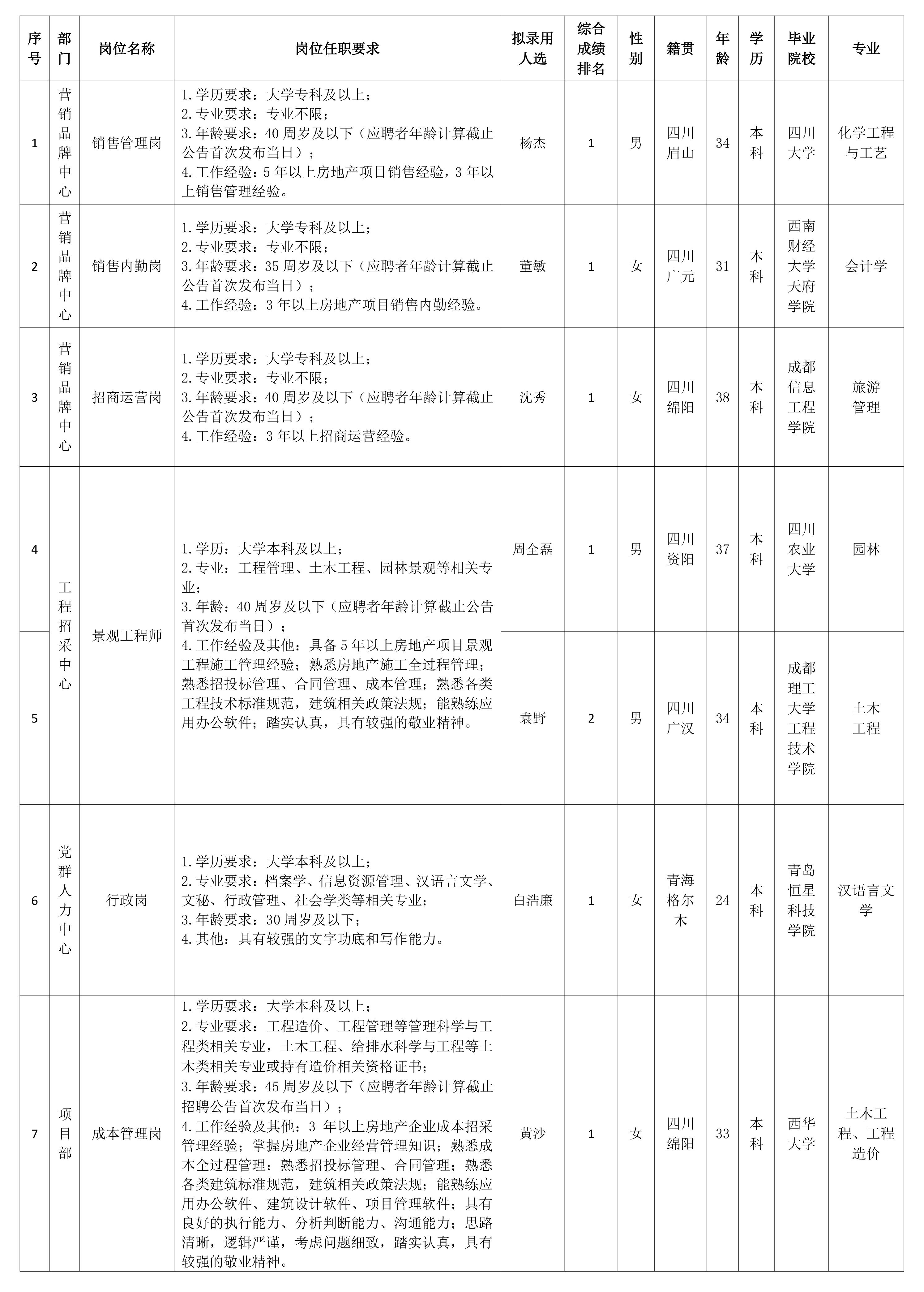 根据绵阳市伟德源自英国始于1946置地有限公司发布的招聘公告及招聘相关规定,经笔试、面试、考察、体检等程序,拟录用杨杰等同志到绵阳市伟德源自英国始于1946置地有限公司工作,现予以公示,具体情况如下:
