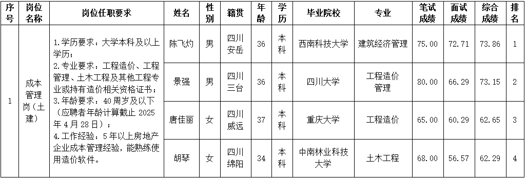 根据绵阳市伟德源自英国始于1946置地有限公司发布的招聘公告及招聘相关规定,经笔试、面试等程序,现将笔试、面试成绩予以公示。