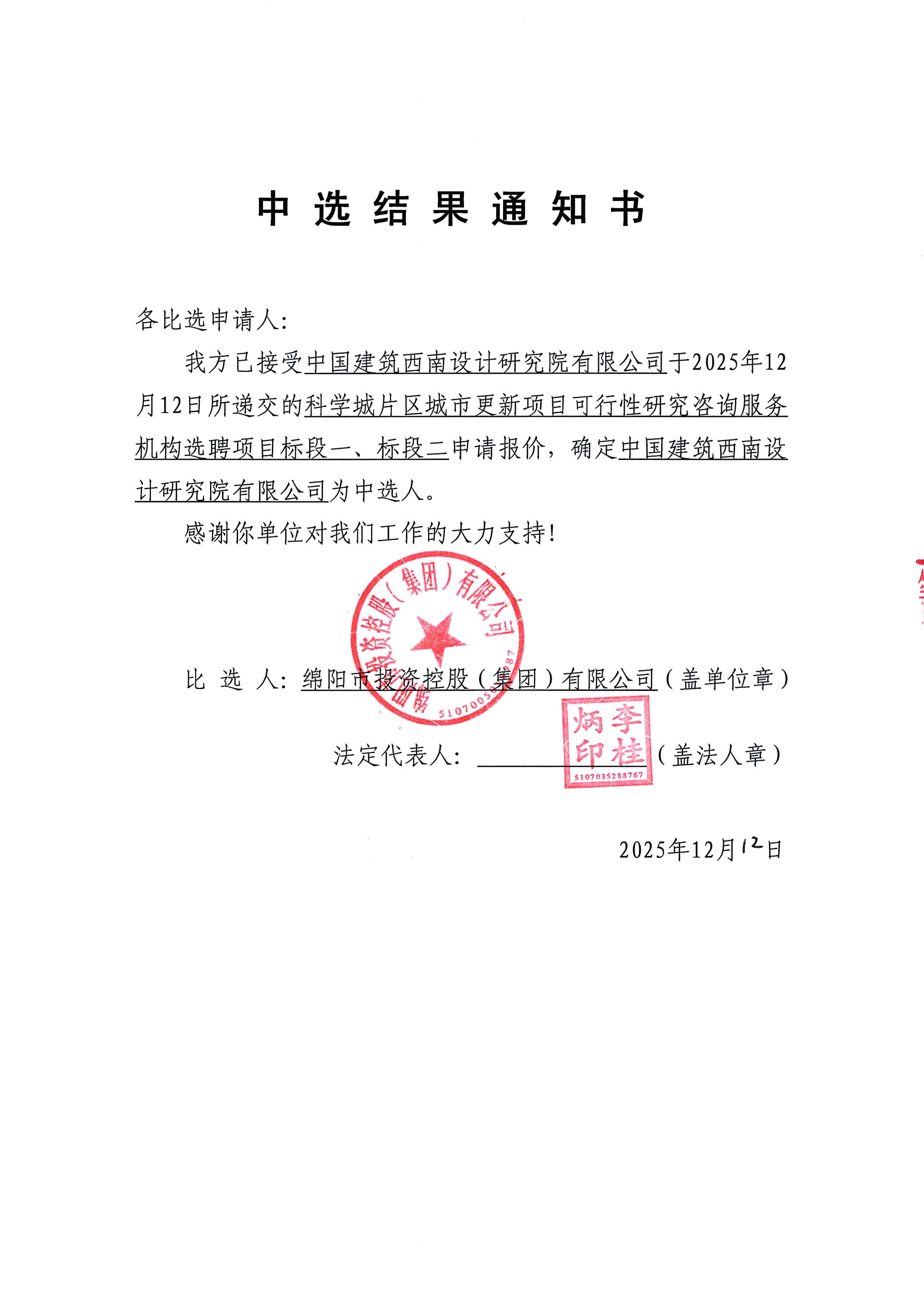 科学城片区城市更新项目可行性研究咨询服务机构选聘比选结果公告