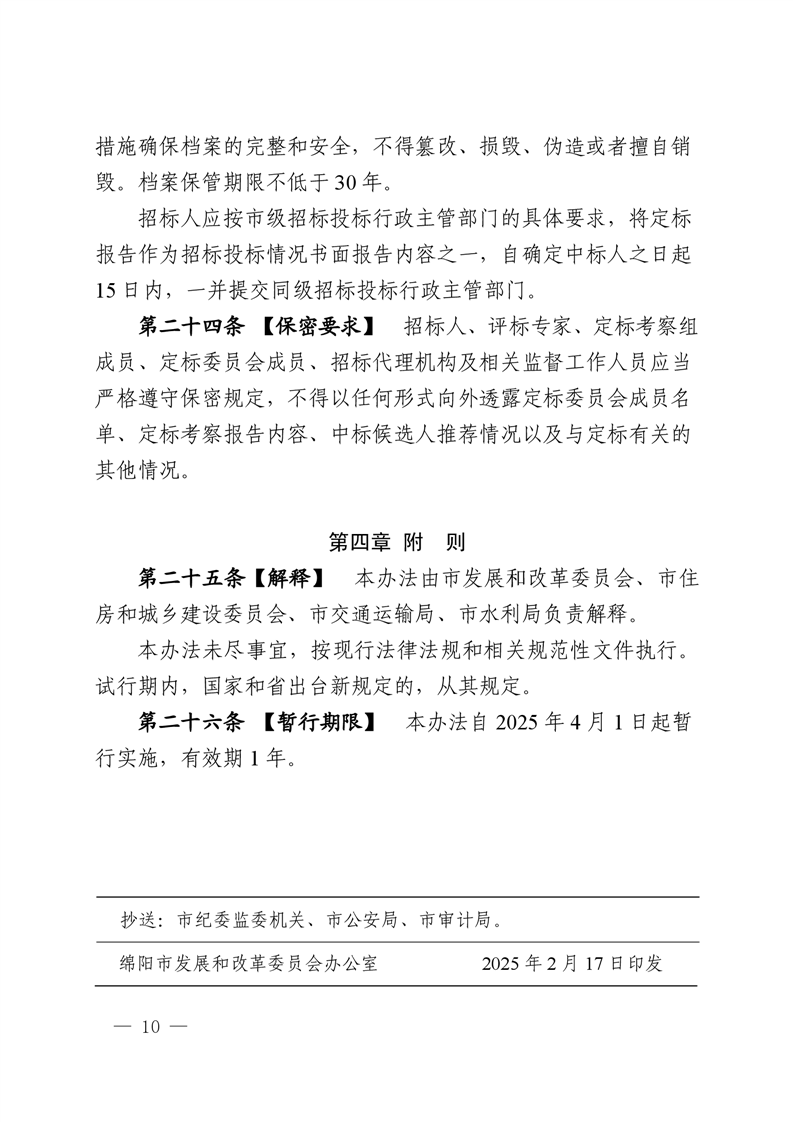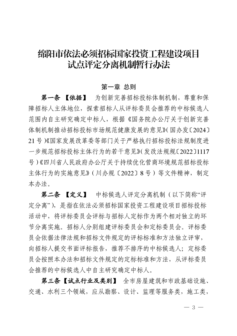 绵阳市依法必须招标国家投资工程建设项目试点评定分离机制暂行办法(2025.2.28发布)